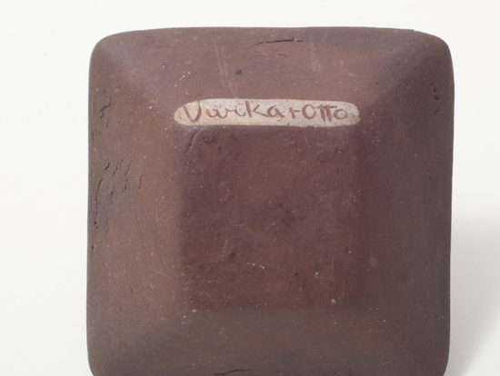 Description: Early, small handbuilt square dish or ashtray marked Vivika & Otto